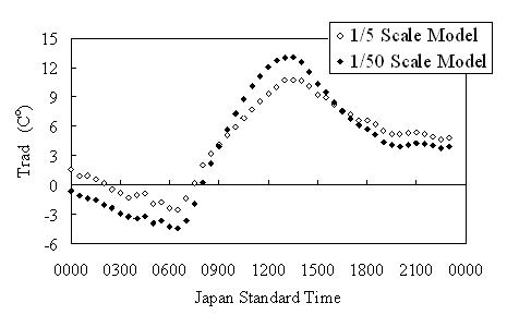 ![]() Surface temperature difference between 1/5 and 1/50 scale models |