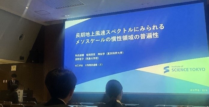 まず、昨年度修士課程を修了された秋田さんの論文が、昨年12月に開催された第69回水工学講演会にて、水工学論文賞を受賞しました!