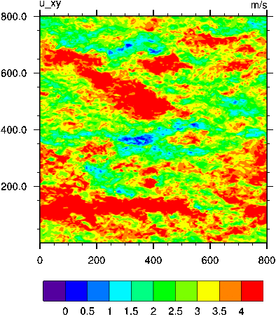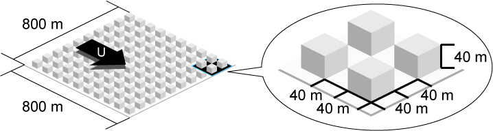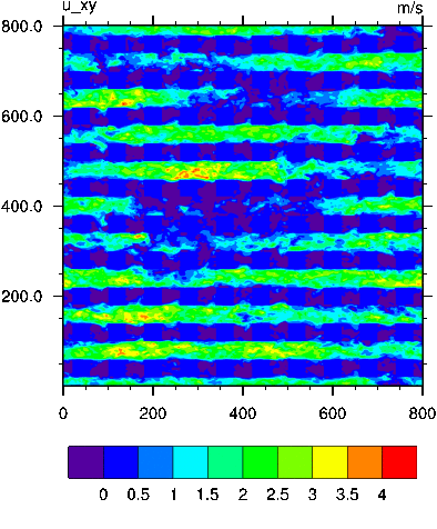 PALM (Parallelized large eddy simulation model)を用いて立方体正方配列上の流れ場のシミュレーションを行いました。